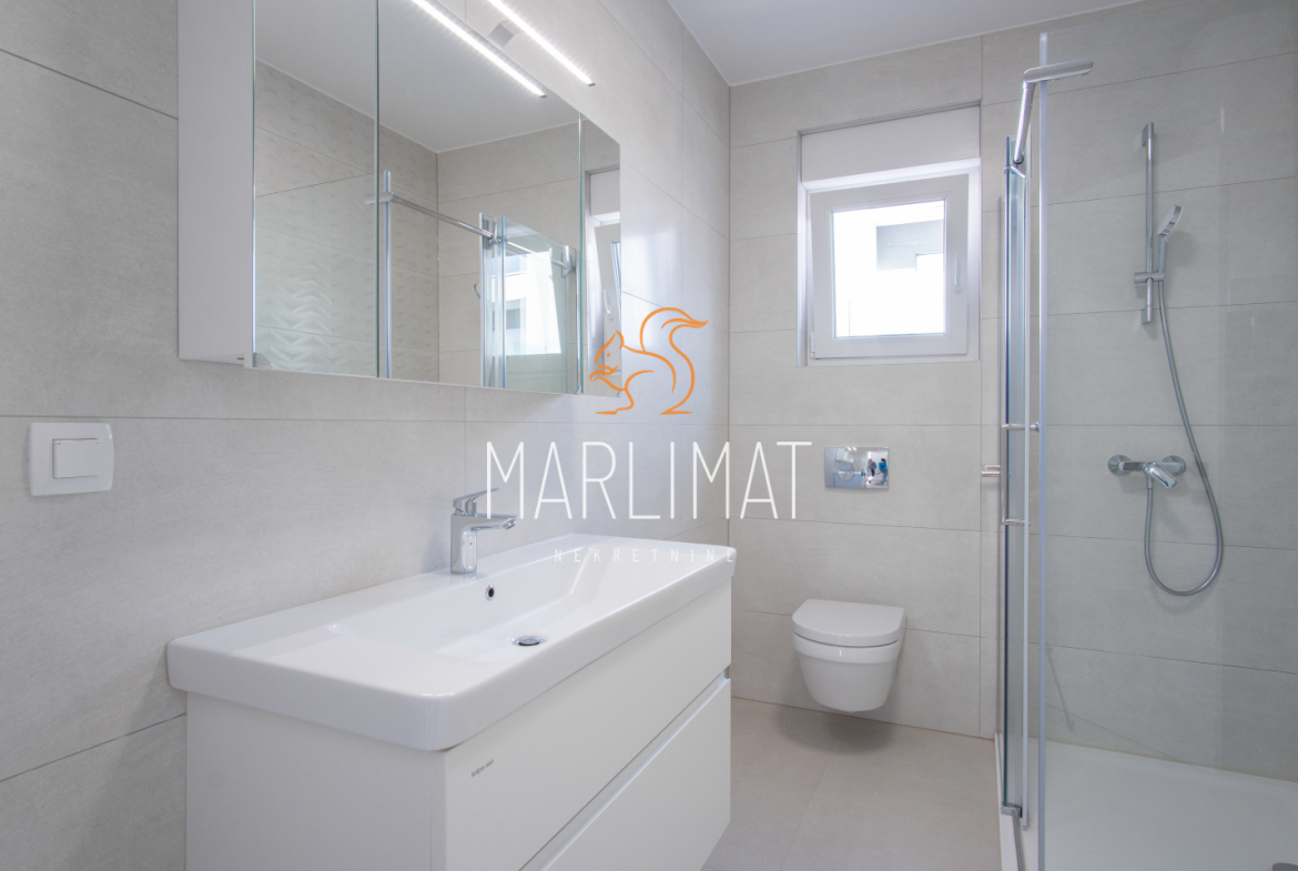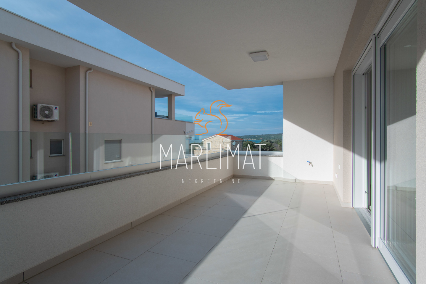 *TERASE: velika prostrana terasa, natkrivena terasa, slavina(za pranje terase), hidroizolacija SIKA, struja-utičnice, intimna rasvjeta ugrađena u ogradni zid terase, veliki format keramike
