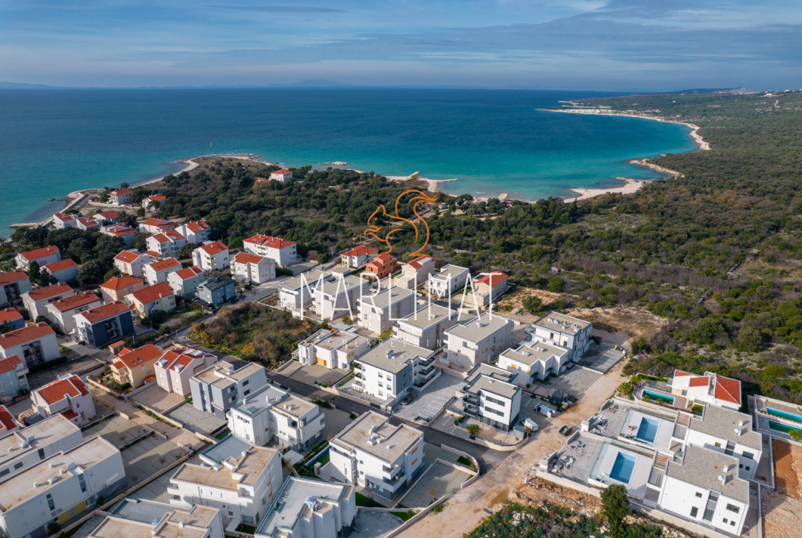 Prodaje se moderna moderna urbana zgrada s 5 apartmana na atraktivnoj lokaciji u novom elitnom naselju pored luksuznih villa u mjestu Novalja (otok Pag). Nalazi se na prestižnoj lokaciji samo 150 m od mora i popularne plaže „Babe“. Do centra Novalje i poznatih restorana dolazite pješice šetnicom uz more za cca 20 min. Udaljenost od trgovine,pekare i kafića je 200m. Vrhunska gradnja i luksuzno uređenje čine naše apartmane savršenom investicijom i mjestom za odmor.