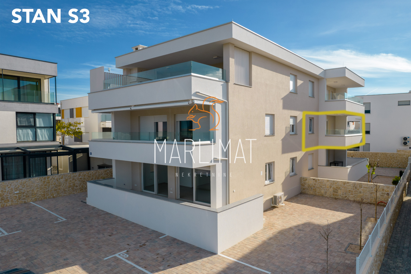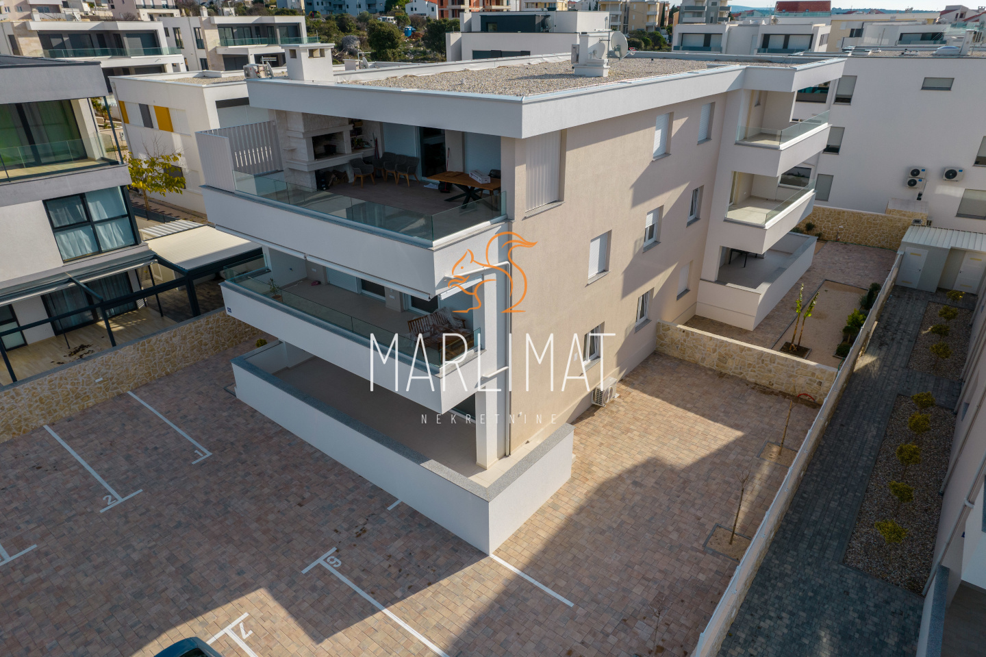 *PARKING: svakom stanu pripadaju 2 parkirna mjesta, opločnici velikog formata, zidna rasvjeta