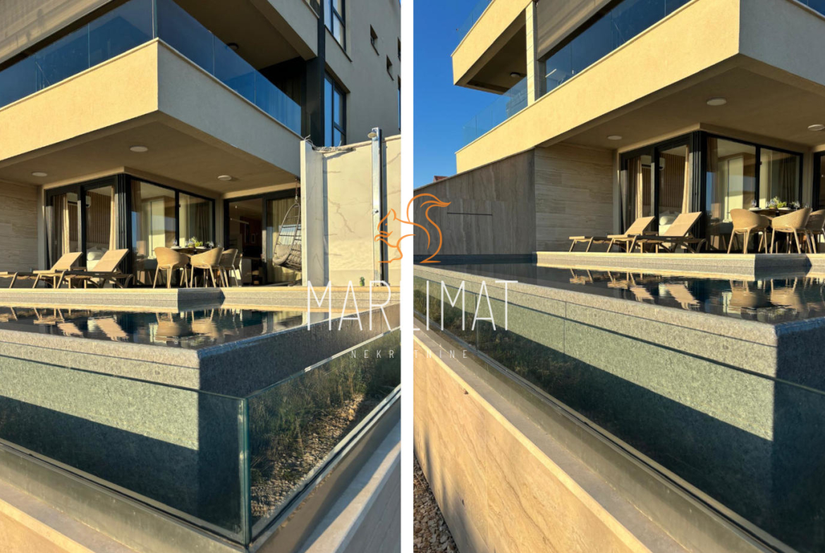 Na otoku Pagu točnije u mjestu Povljana prodaje se apartman sa bazenom veličine 103.19m2 koji se nalazi I. RED DO MORA u prizemlju stambene zgrade!