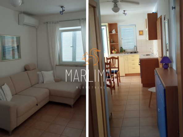 Apartman je klimatiziran i namješten te mu pripada parkirno mjesto ispred zgrade. Postavljena nova limarija, novi krov te je zgrada i priključena na kanalizaciju. Udaljen je od plaže svega nekoliko minuta hoda.