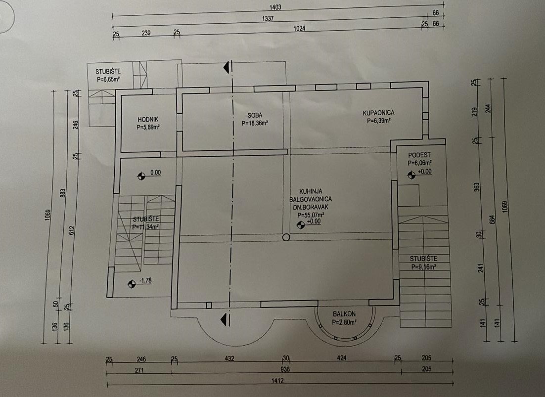 Objekt je nedovršen, u roh bau izvedbi ali samostojeći i tlocrtno dimenzija 14,12m x 10,69m te se sastoji od SUTERENA I PRIZEMLJA.
