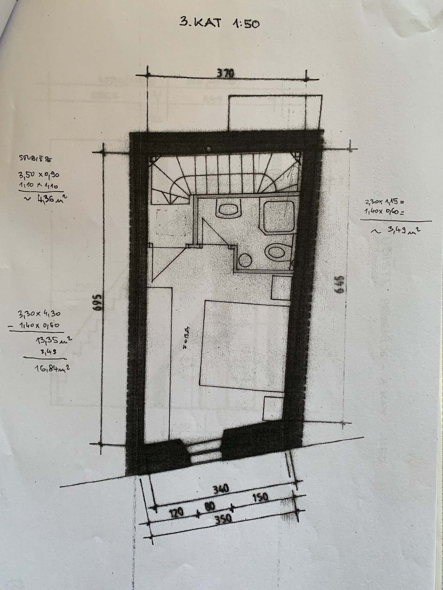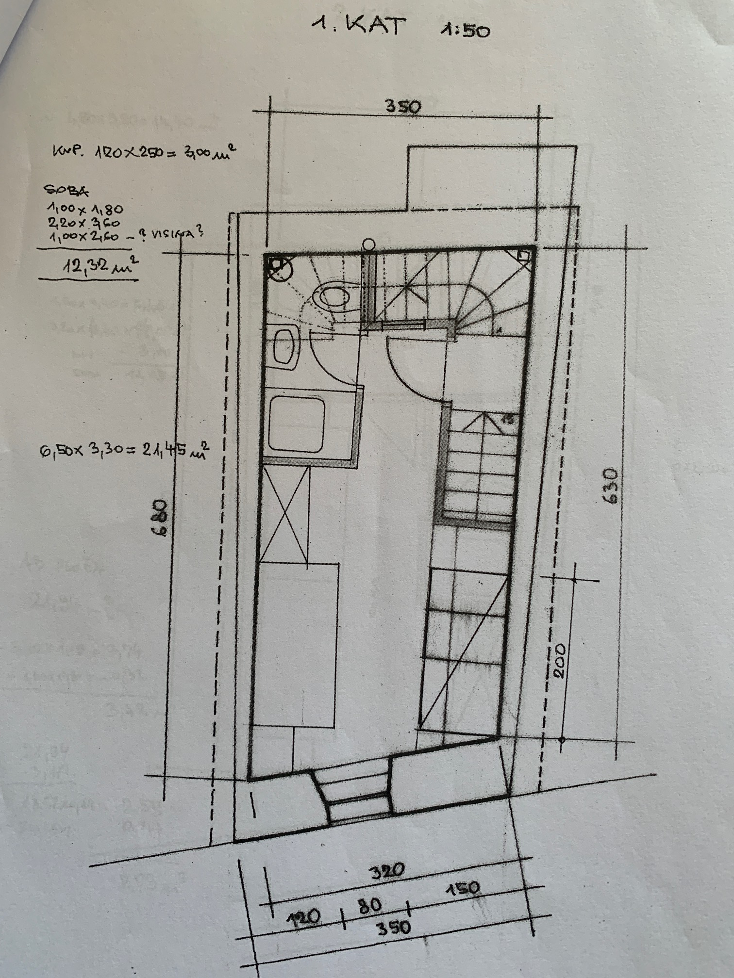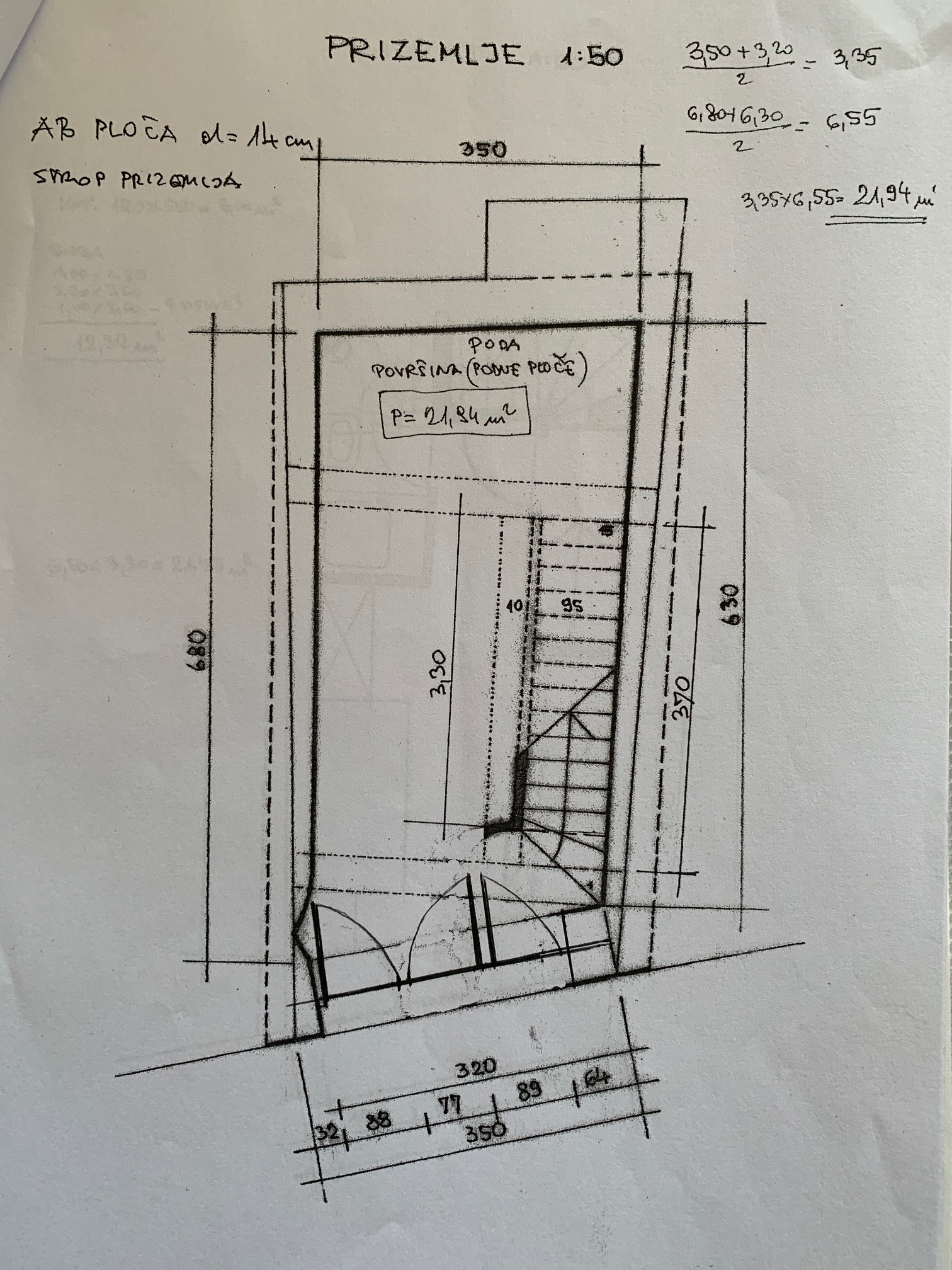 Prizemlje je trenutno u namjeni poslovnog prostora te se sastoji od jedne sobe i WC-a. 1.kat se sastoji od spavaće sobe i dva WC-a te je zamišljeno da služi kao prostor za osoblje od poslovnog prostora u prizemlju. 2.kat se sastoji od spavaće sobe sa kupaonicom a 3.kat od dnevnog boravka, kuhinje i kupaonice.