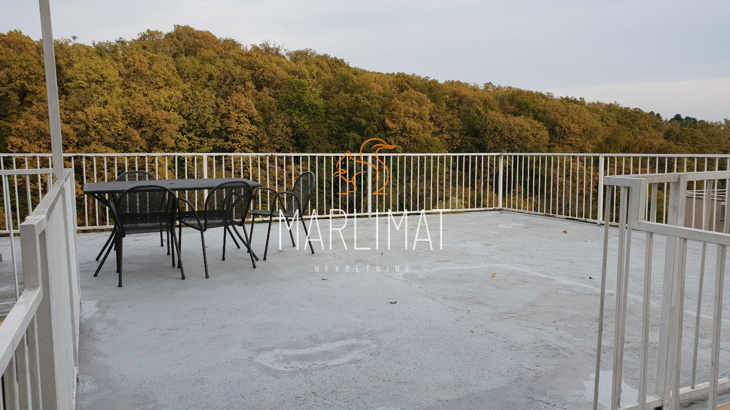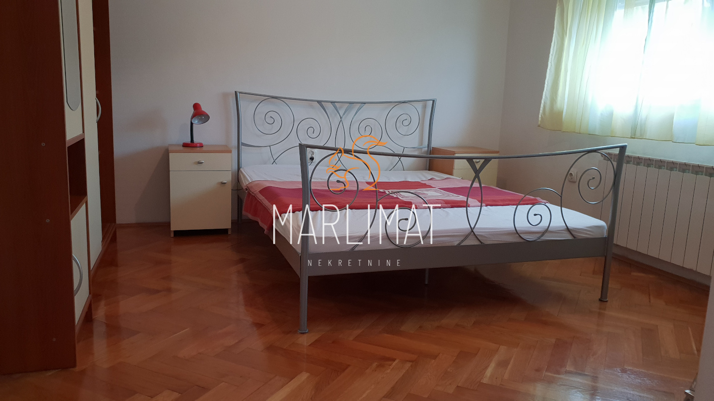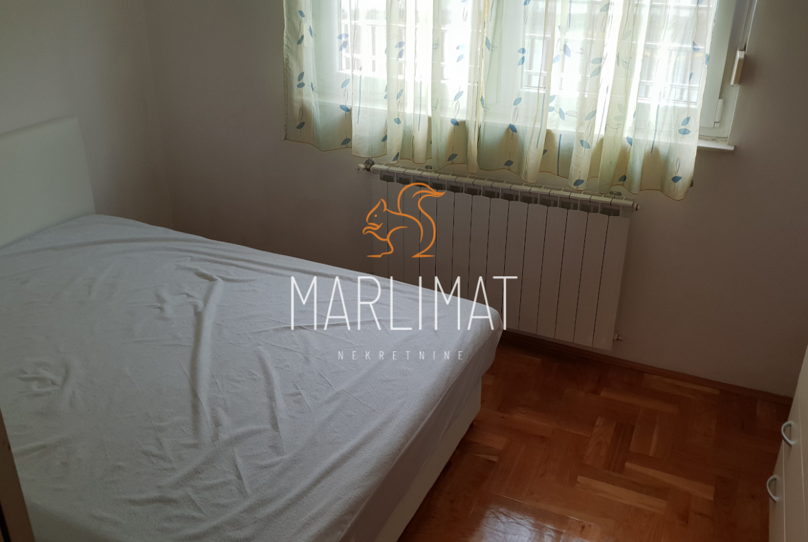 Iznajmljuje se 3-sobni stan površine 70m2 koji se nalazi u prizemlju, a sastoji se od: ulaznog hodnika, spavaće sobe, dnevnog boravka, dječje sobe ili radne, kupaonice, kuhinje s blagovaonom iz koje se izlazi na veliku terasu od 40m2 sa prekrasnim pogledom na šumu.