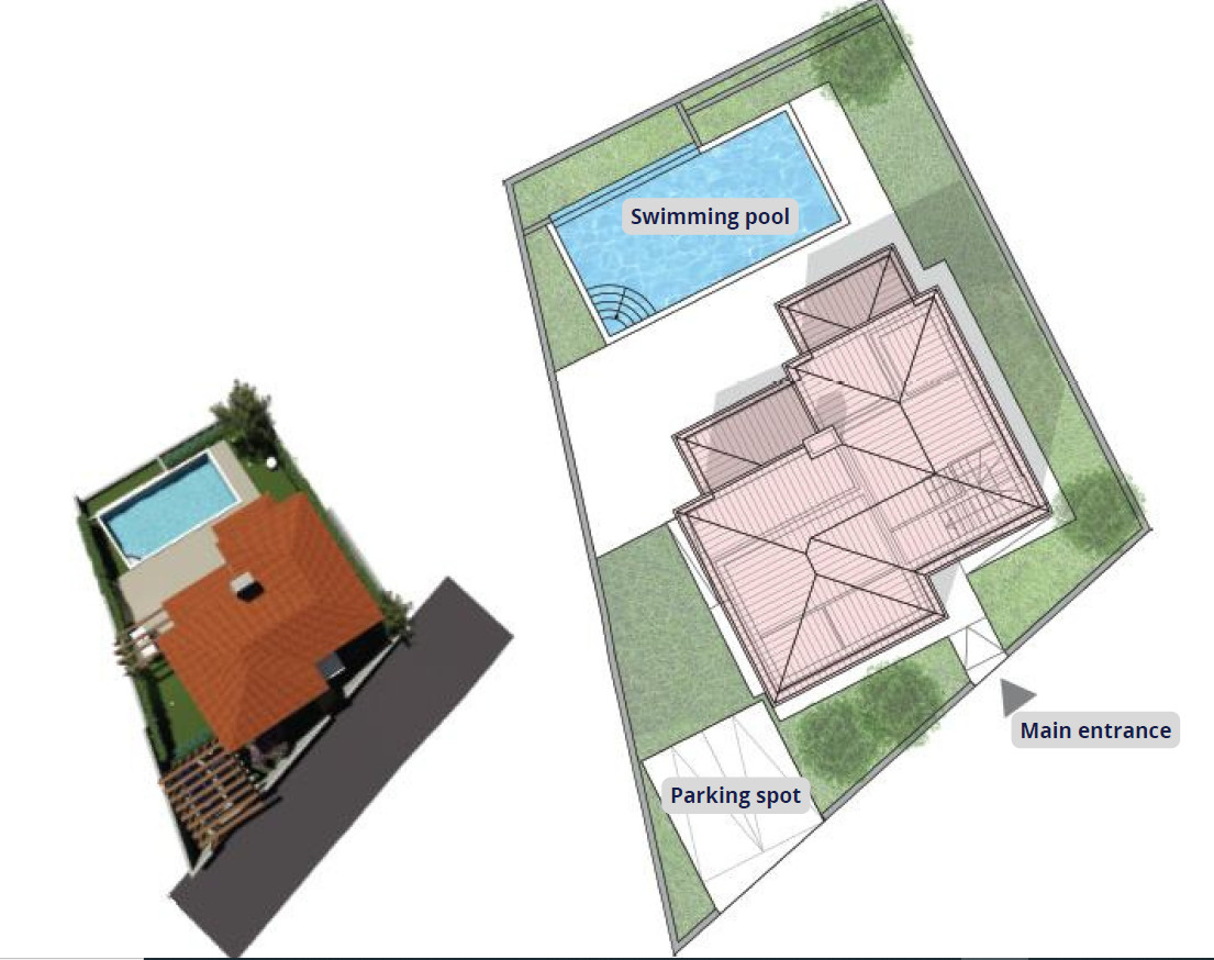 U cijenu ville je uključena nova kuhinja. Također kući pripadaju tri parkirna mjesta.